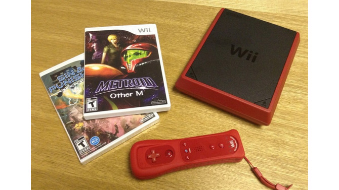 カナダ限定で発売されたWii miniは、スタイリッシュな赤と黒の筐体が印象的で、赤いWiiリモコンとヌンチャクも同梱されています。「mini」と名付けられてはいますが、サイトで公開されている画像を見る限りオリジナルWiiとのサイズ差では「ミニ」と呼べるほど小さくはないようです。さらに過去の任天堂ハードとサイズを比べている写真では、ファミコン(NES)と同じぐらいのサイズだということがわかります。