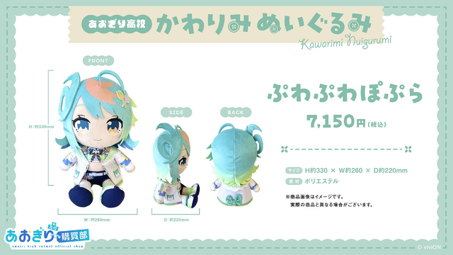 viviONはVTuberグループ「あおぎり高校」について、4月7日12時より所属メンバーたちの「かわりみぬいぐるみ」の受注予約を開始しました。
