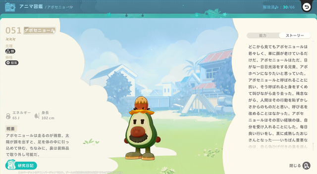 冒険のなかではアニマを常に一匹、連れて歩くことができます。どのアニマも見た目がとてもキュートなのですが、特に、今回のテストで筆者はアボカドのアニマ「アボセニョール」に惹かれました。