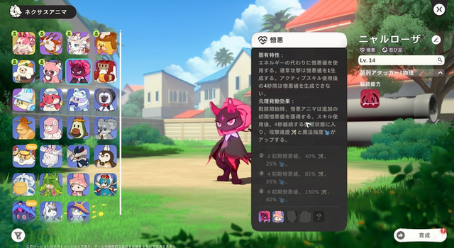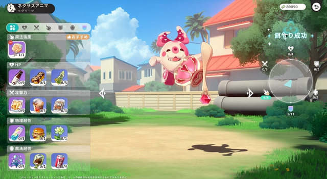 アニマには食べ物などのアイテムを与えることでステータスを伸ばせる育成要素も用意されています。アイテムはアニマに応じたオススメが表示されるので、育成に迷うことはなさそうと感じました。