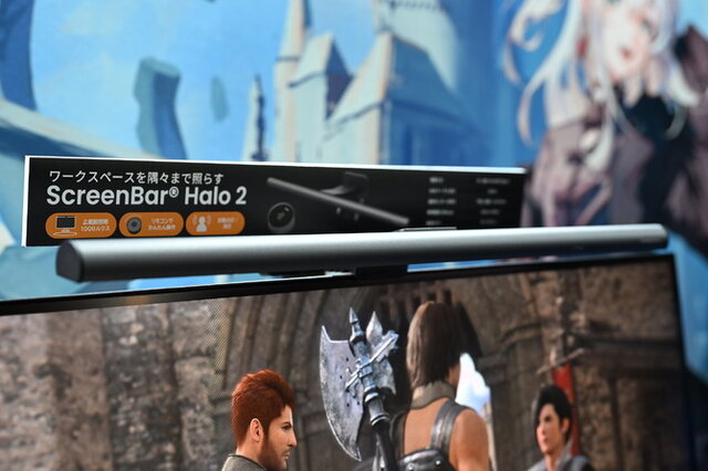 「EX271U」と「EX321UX」には、モニターの画面に影響することなくその下を明るく照らすモニター取り付け型ライト「ScreenBar Halo 2」も展示されていました。