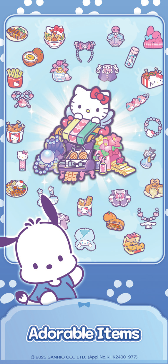 ショッピングタウンを復活させるため、パズルをクリアしてストアを作り上げていく、マージ系パズルゲーム。Android/iOS向けタイトルで、ハローキティやサンリオのキャラクターたちが大集合しています。