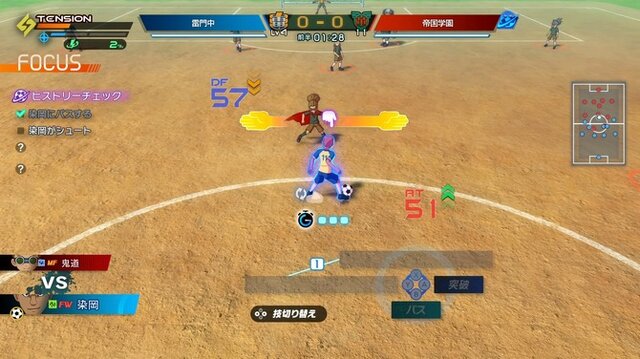 試遊の後半にはクロニクルモードにて、初代『イナズマイレブン』の序盤のストーリーである、帝国学園との練習試合を追体験することができました。