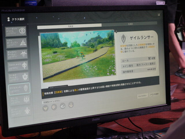クラスはゲイルランサー、ヘヴィガーディアン、ディバインアーチャー、ストームブレイドなど8種類から選択。とはいえ、10分間の試遊ではさまざまなクラスを試す余裕はないので、キャラクターメイキングでうっかり時間を使いすぎないよう注意が必要です。