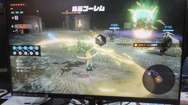 しかし『ゼルダ無双』シリーズは『無双』のシステムも踏襲しているため、使用可能なキャラクターが多いという特徴があります。今回の試遊プレイでは、本作の主要人物となる「ゼルダ姫」「ラウル」「ミネル」の3人が編成されており、切り替えることでいずれのキャラクターも操作可能でした。