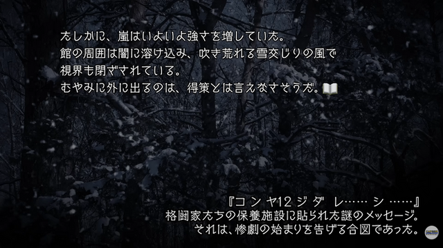 雪で閉ざされた山荘で起こる惨劇。この謎を果たしてプレイヤーは解き明かせるのでしょうか?