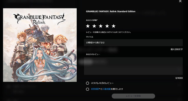 レビューは購入者限定で、最大4000字まで投稿することができます。