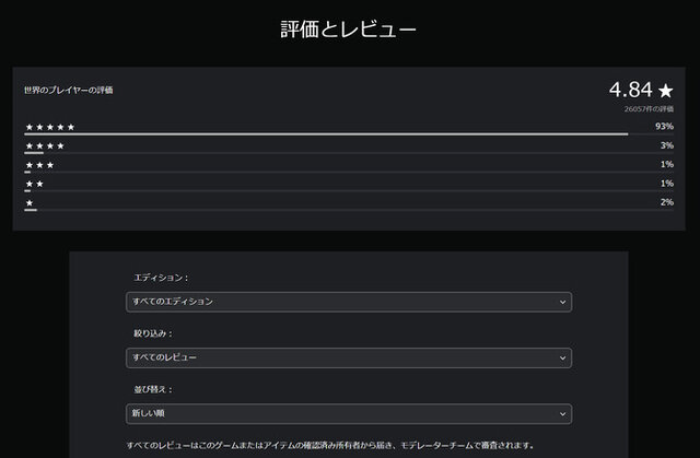 また、レビューの投稿は購入者限定である点や、モデレーターによる審査のプロセスがあることで、“低評価爆撃”や荒らしにも一定の効果が期待できます。直近では「プレイ動画を見て書いたレビュー」が話題にもなりました。