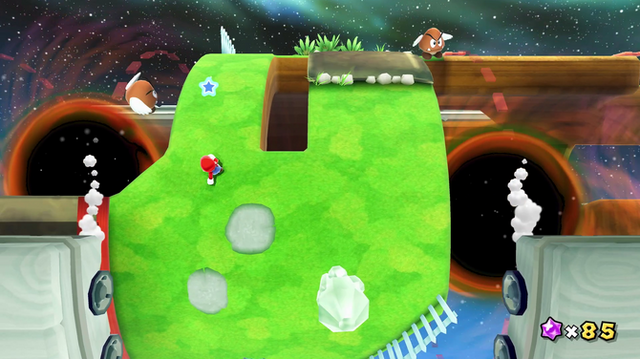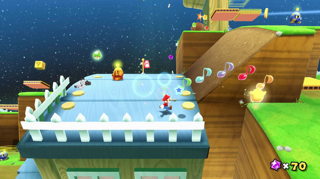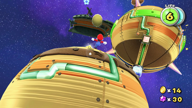これらのステージは『スーパーマリオギャラクシー』と比較してより洗練されており、マリオの挙動に対してよりスムーズに進める地形、ギミックの配置でテンポ感が向上しています。ステージも、ギミックをどんどんと使い捨てていくような贅沢な作りであり、次のステージに入るたびに新たな遊びを提供してくれます。
