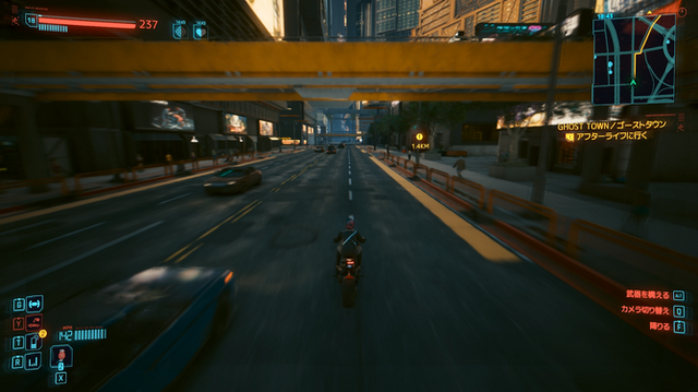 その後、編集部でも「Cyborg」を使って『サイバーパンク2077』をプレイ。銃撃戦や人の多い場面などではグラフィック処理のための負荷が高まりますが、映像のブレや遅延、重さを感じることはありませんでした。