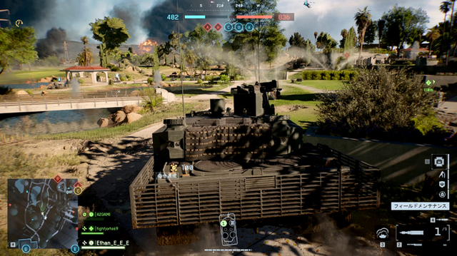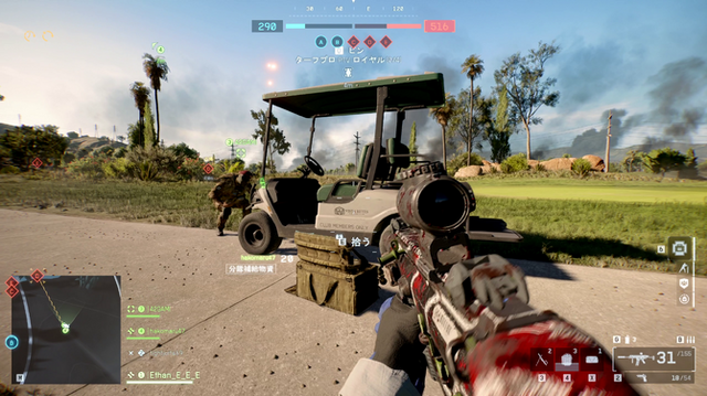 また、ゴルフ場らしく専用ビークルの4人乗りゴルフカートも登場します。ゴルフカートを使ったC4特攻も流行りそうです。このマップも背の高い建物はありませんが遮蔽物が多く、近~中距離戦が中心となりました。