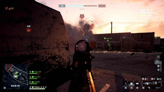 マップにはハイライトされている物資箱があり、それらは一定のダメージを与えると破壊でき、より多く破壊できた攻撃チームが勝利となります。 各チームにはそれぞれ攻撃ラウンドと防衛ラウンドがあります。 今回プレイできたマップはどちらも『バトルフィールド』らしからぬ、縦長のレーンマップになっており、少し『Call of Duty』らしさも感じられます。