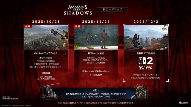 ユービーアイソフトは、ニンテンドースイッチ2版『アサシン クリード シャドウズ』の発売日を2025年12月2日に決定したと発表しました。