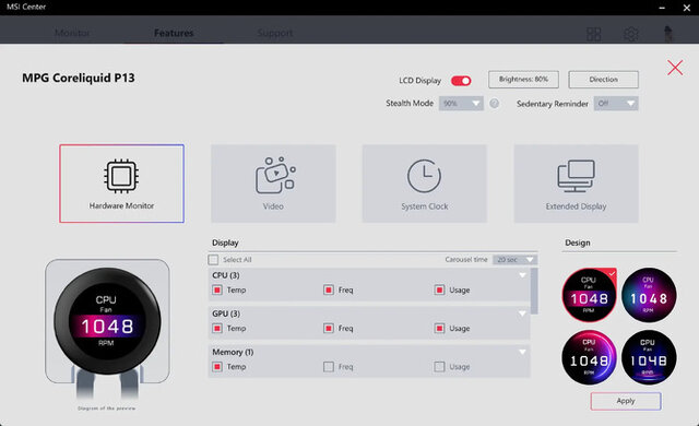 販売元のMSIいわくLCDスクリーンを採用しているほか、解像度480pかつ拡張ディスプレイとしての機能も搭載しており、スペック表には記載されていませんが、リフレッシュレートは60Hzであるとの報告も存在。