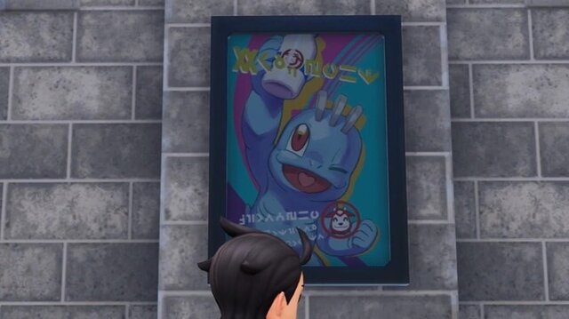 そこから少し外れて「サウスサイドストリート」の路地裏を覗くと、『ポケットモンスター サン・ムーン』最初の3匹でお馴染み「アシマリ」のポスターがコッソリ。『Pokémon LEGENDS アルセウス』では同作出身の「モクロー」が登場していたためDLCでの出番に期待したいところです。