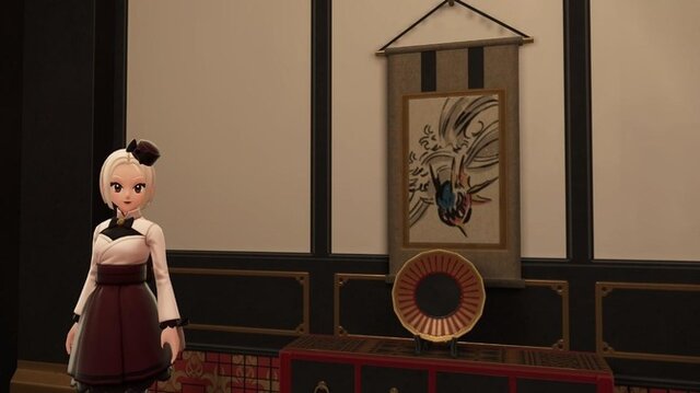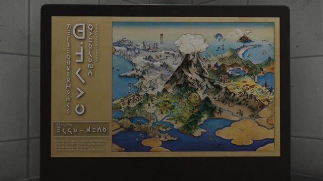 そして「大ヒスイ展」には、『Pokémon LEGENDS アルセウス』に登場の伝説やキング・クイーンポケモンらをモデルにした「古代ヒスイ文字」や、ディアルガ・パルキアの石像が飾られており、細かいネタとしては地図や掛け軸、着物にもポケモンが描かれています。