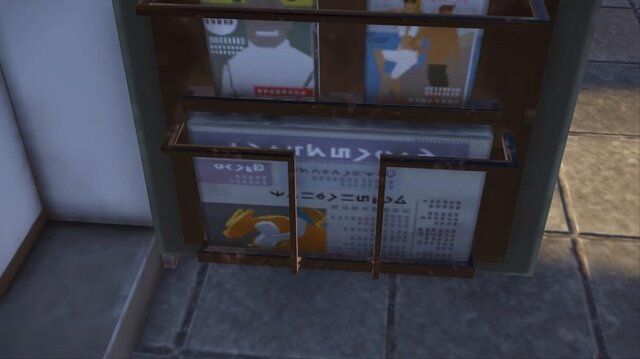 また筆者的に注目したい点として、中央のスペースには黄、紫、赤のカラーリングと印象的なピンクの唇から「ルージュラ」モチーフらしき抽象的な化粧品ポスターもあり、この世界で“ポケモンという存在が知っていて当たり前の存在となっている”ことを実感させてくれます。