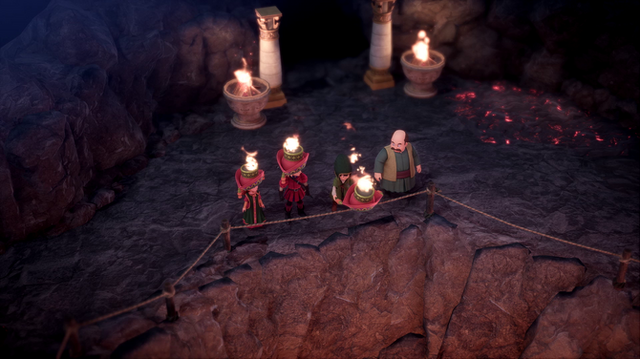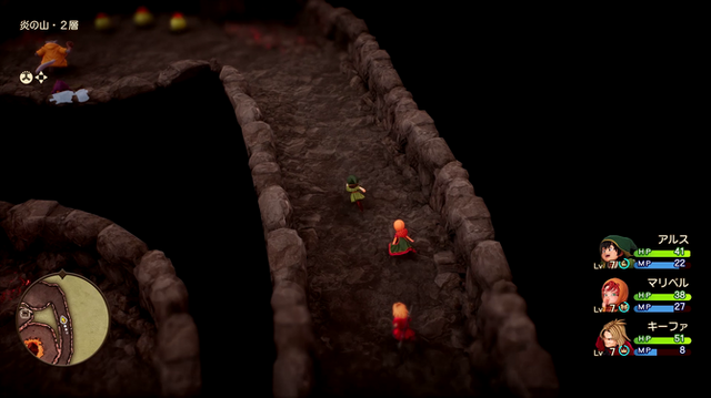帽子を投げ終えると、こっそりと山の奥に潜入する主人公たち。火送りの儀が終わるまでに、予言の原因を探らなければなりません。ここからダンジョンがスタートします。
