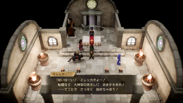 そしてさらに、好きなタイミングでダーマ神殿の大神官ミレッカを呼び出せるようになったので、転職も自由自在に!いちいちレベル1に戻ることもないので、色々な職業を気軽に試せるようにもなりました。