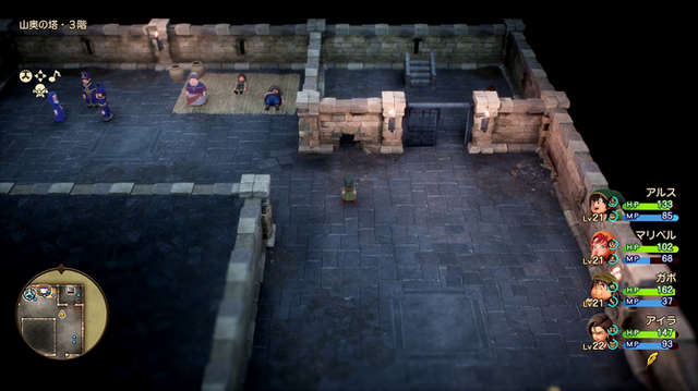 主人公たちが住民たちを追って旅の扉に飛び込んでみると、そこは近くにあった山奥の塔の内部でした。ここからダンジョンが始まります。