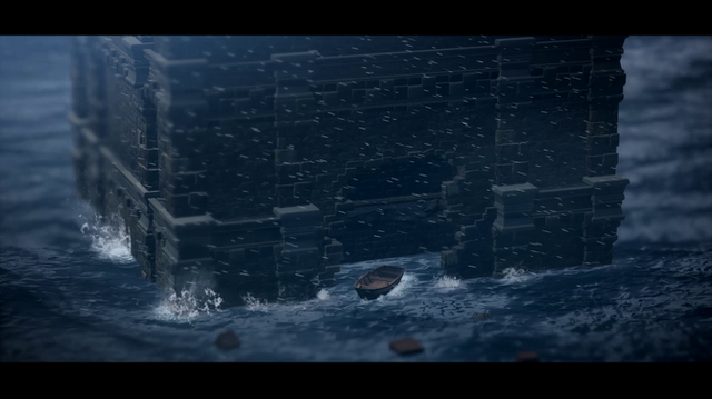 その瞬間、世界が大水に飲み込まれてしまいました。大昔に暴れていた海の魔神グラコスの仕業です。老楽士はこのことを予見しており、住民を救うために高いところに避難させていたのでした。