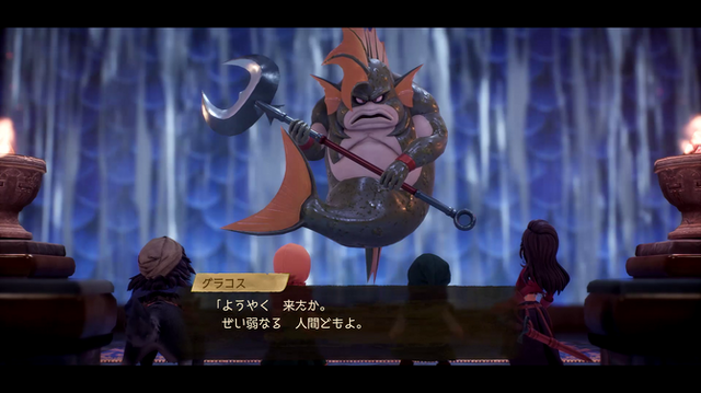 とはいえ、グラコスを倒さなければどうにもなりません。主人公たちは老楽士の思いを汲み取り、ハーメリア地方を解放するため、グラコスを討伐するのでした(綺麗になったことで妙にぬめぬめしています……)。