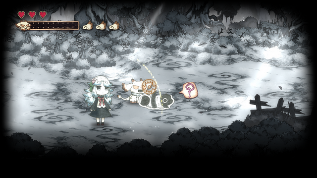 絵本の中の世界では、怪物や障害物、メッセージに至るまで、モノクロで描かれたもの全てをメェルに食べてもらい、破壊することが可能です。