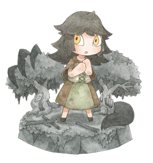 本作は、『嘘つき姫と盲目王子』『わるい王様とりっぱな勇者』に続く、人と異形の交流を描いた「絵本」シリーズの最新作。アナログイラストを使った絵本的な表現は引き継ぎつつ、フィールドをモノクロにすることで恐ろしくも美しい世界を表現しています。