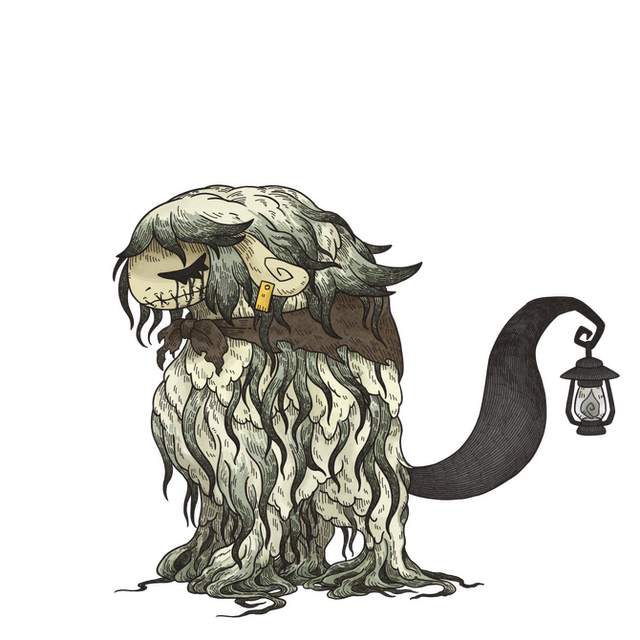 通称『メェル』。異書館の怪物たちの中でも悪名高い伝説の怪物。人間を傷つけた罪で呪いの首輪をつけられ、異書館の一室に閉じ込められていた。ほかの異形たちや、シニガミ病によって生まれたものを食べるほど強くなるチカラ『紙喰い』の使い手で、かつての強さを取り戻して呪いから自由になるために、モノに協力を持ちかける。