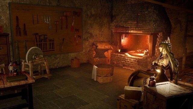 工房では武器・ジェイル・伝承術式の強化が可能。また、武器や防御術式に属性を付与する「転成」、敵が落とした素材からステータスを強化する装備品を作成することができる。