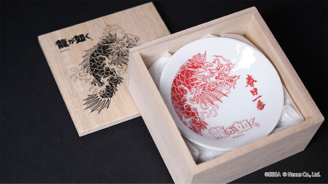 また、春日一番の誕生日は1月1日。発売日が誕生日と近いこともあり、数量限定の「春日一番生誕記念セット」には、彼の入れ墨である「龍魚」があしらわれたオリジナル盃が同梱されます。