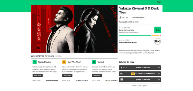 セガは、『龍が如く』シリーズの最新作『龍が如く 極3 / 龍が如く3外伝 Dark Ties』を本日2月12日に発売しました。記事執筆時点でのメタスコアは75点です。