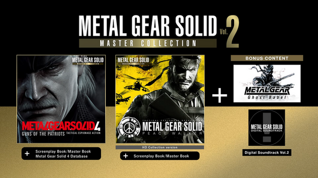 また、ボーナスコンテンツとしてゲームボーイカラー向けに発売された外伝作品『メタルギア ゴーストバベル』と、「METAL GEAR SOLID DIGITAL SOUNDTRACK Vol.2」も付属。早期購入・予約特典および、『Vol.1』セーブデータ連動特典のカムフラージュ・ユニフォームも用意されています。
