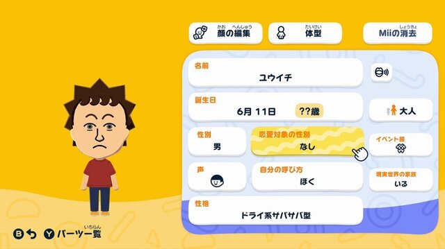体験版でもMiiのさまざまな恋愛対象を設定できます。