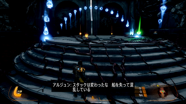 ストーリーの詳細は限られた試遊時間では計り知れませんでしたが、プレイヤーは主人公「アルジュン・デヴラジ」となり、社の命令と自らの目的(何らかの人物を追っているっぽい描写がありました)を果たすべく、謎に満ちた惑星「カルコサ」を探索します。カルコサには環境が激変する「日蝕」があり、それによって仲間たちが正気を失っていく……といったサスペンスフルな展開も用意されています。