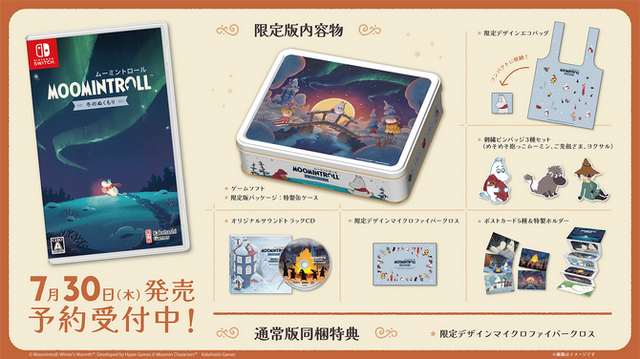 『ムーミントロール:冬のぬくもり』ダウンロード版は、Steam/ニンテンドースイッチ向けに本日4月28日リリースで、価格はSteam向けが2,300円(5月12日まで15%オフの1,955円)、Steam向け「サポーターエディション」が4,640 円(5月12日まで15%オフの3,941円)、スイッチ向けが2,550円(5月10日まで15%オフの2,167円)です。