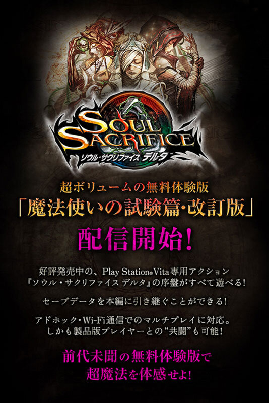ソニー・コンピュータエンタテインメントジャパンアジアは、PlayStation Vitaソフト『ソウル・サクリファイス デルタ』の新たな無料体験版「魔法使いの試験篇・改訂版」を本日より配信開始すると発表しました。